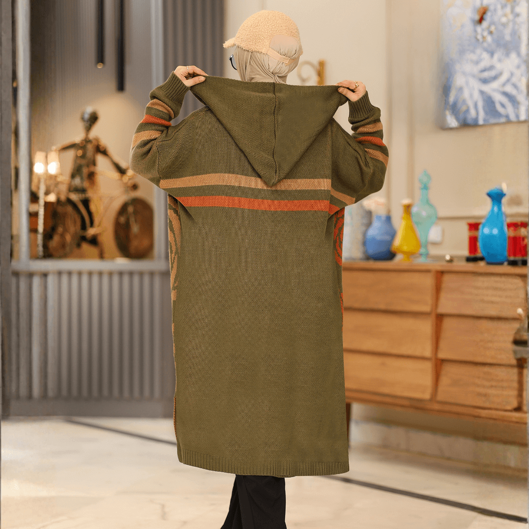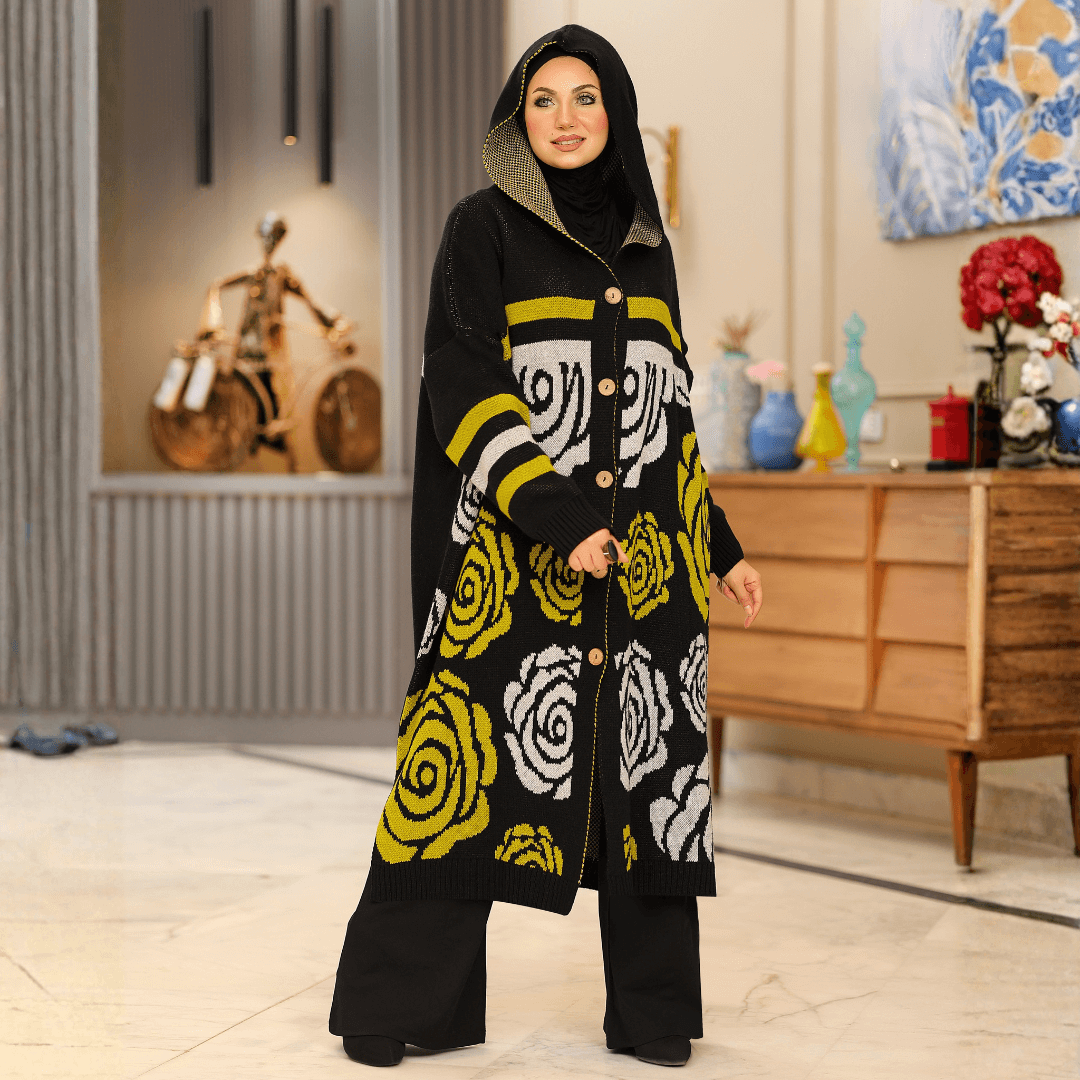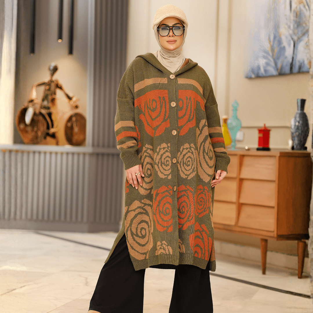 تونك زراير طويل مع كابشو تلبيس مريح ومظبوط على الجسم ، ماتريال صوف مستورد ناعم ويدفى من غير ما يكون تقيل