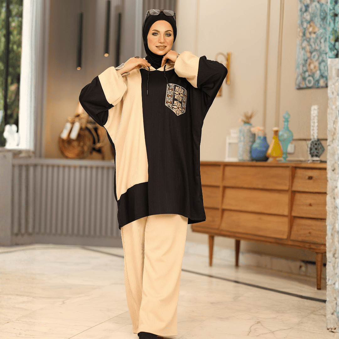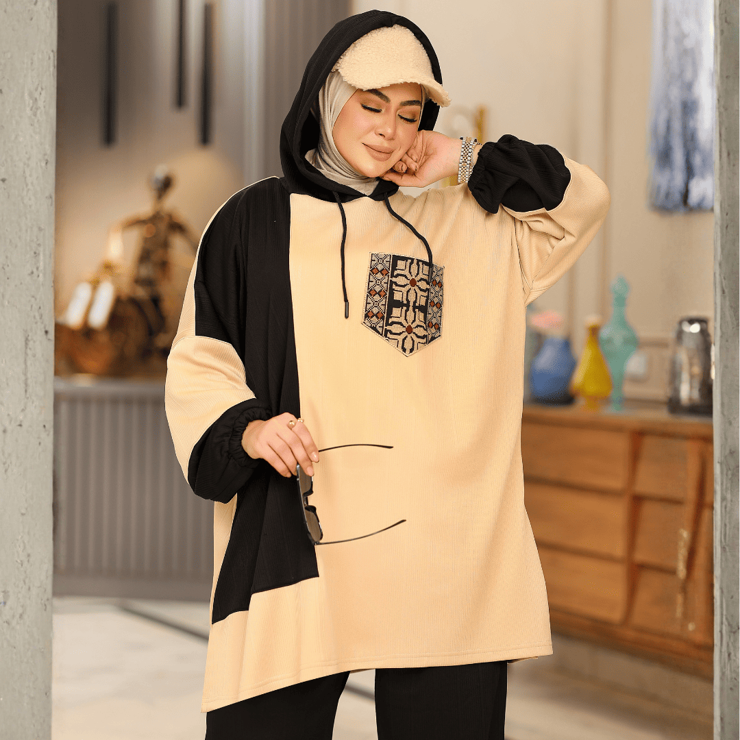 قطعتين سوت بشكل جديد وخامة شتوى ناعمة ومريحة (ريب شتوي مستورد) ، هودي بقصه ذكيه مناسب للبيج سايز مطعم بجيب من الايتامين الفخم وبنطلون واسع